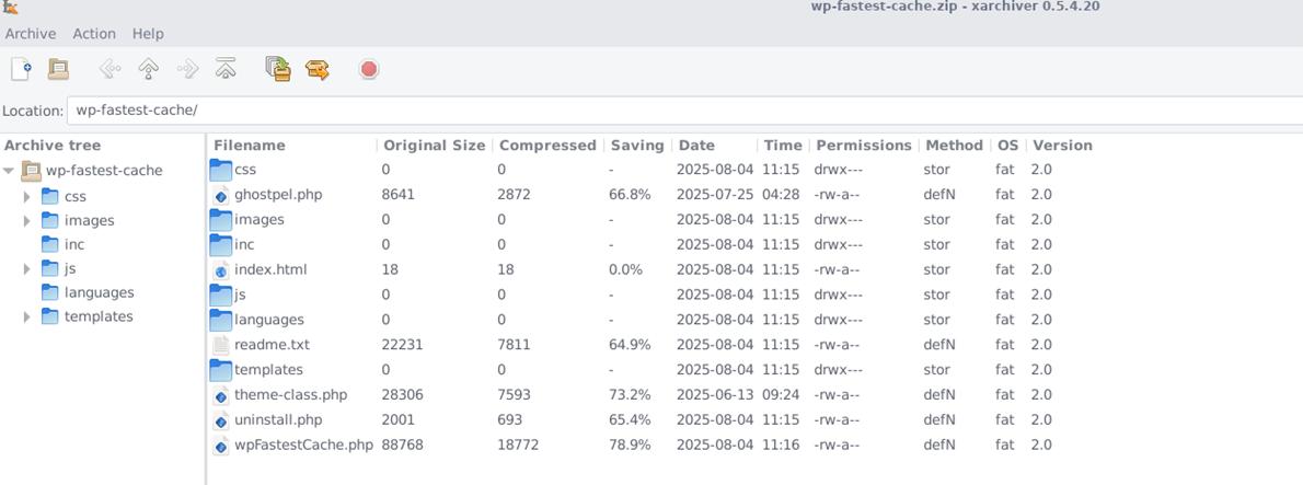 The attacker was able to upload a malicious wp-fastest-cache.zip file