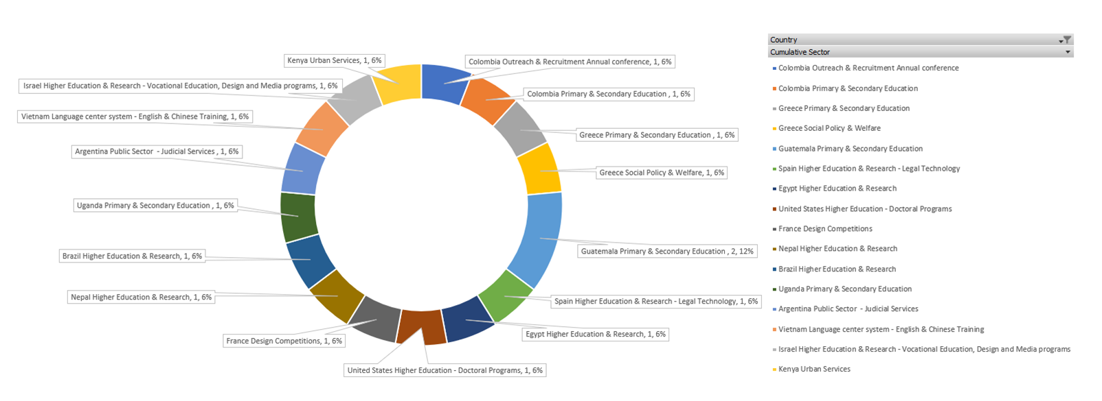 Asia region targeted Nepal (South Asia – Himalayas), Vietnam (Southeast Asia), Israel (Middle East / Western Asia) for Higher Education & Research – Vocational Education, Design and Media programs, Language center system – English & Chinese Training, and Higher Education & Research sectors.