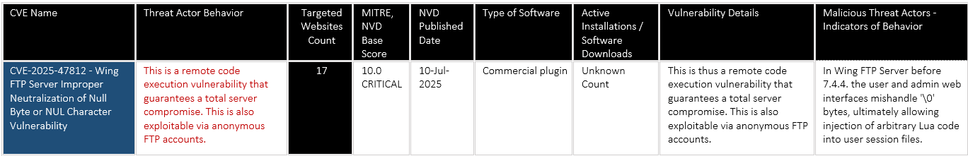 7. CVE-2025-47812 – Wing FTP Server Improper Neutralization of Null Byte or NUL Character Vulnerability