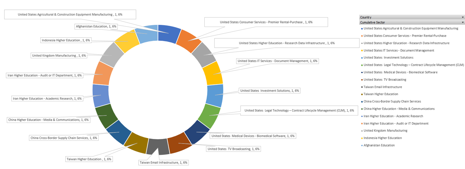 Asia region countries like Taiwan, Iran, China, Afghanistan, and Indonesia for Email Infrastructure, Higher Education, Higher Education – Academic Research, Higher Education – Audit or IT Department, Cross-Border Supply Chain Services, and Higher Education – Media & Communications.