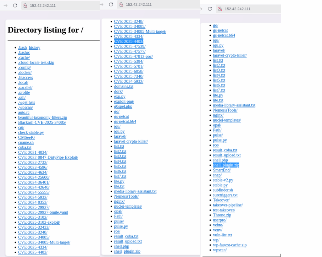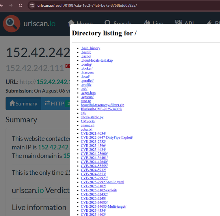 During our OSINT analysis, on 6th August 2025, we identified one of the Open DIR hosting multiple malicious tools and directories, which indicated that this is one of the significant threat actors and is using these toolsets for large-scale compromise attempts.